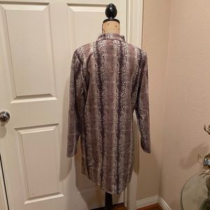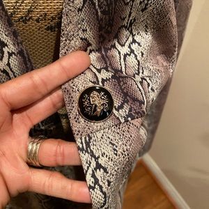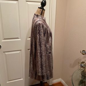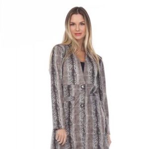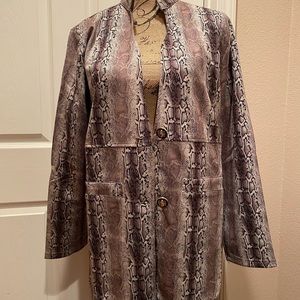 Suede snakeskin print pocket coat. 90% polyester, 10% elastane. Boutique brand. High quality