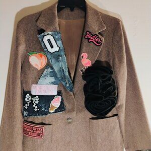 Large Pink Plaid Blazer with patches