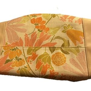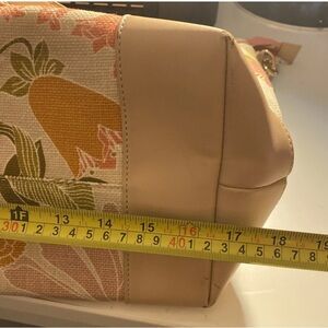 Design: Features a floral pattern with a top zipper closure and faux leather trim.