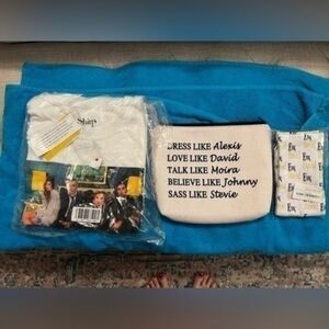 Schitt’s Creek xl shirt socks and makeup bag bundle of 3 items white green nwt