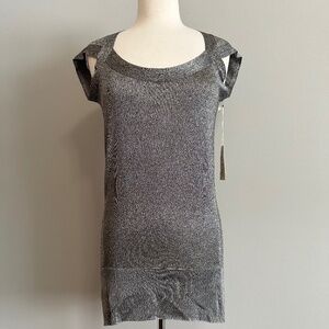 VPL Two Silver Open Shimmery Dress Open Knit Blouse Tunic Sweater Women's S NWT