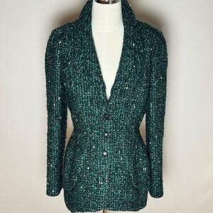 Vintage Thierry Mugler Green Tweed Wool Jacket | Late 90s–Early 2000s | Size 42 | Made in France Step into timeless sophistication with this authentic Thierry Mugler vintage wool jacket, a rare find from the late 1990s to early 2000s collection. Crafted in a rich green tweed blend with mohair and viscose, this structured piece features Mugler’s signature sculptural tailoring, a shawl collar, and flap pockets with snap closures for a sleek, modern edge. 🧵 Details: • Designer: Thierry Mugler • Size: FR 42 (Bust: 38.5”, Waist: 31.5”, Shoulder: 16.75”, Length: 28.75”, Sleeve: 30.25”) • Color: Deep green with tweed texture • Material: 65% Wool, 24% Mohair, 9% Polyamide, 2% Viscose • Closure: Snap front • Features: Shawl collar, flap pockets, fitted silhouette • Condition: Good vintage condition with minor pulling consistent with age • Made in France 🌟 Why It’s Special: • Rare archival Thierry Mugler—from the designer’s pre-2003 era before the brand’s major transition • High-quality European tailoring with a bold, feminine silhouette • Perfect for collectors, stylists, and fashion historians • Editorial-worthy layering piece for fall/winter styling