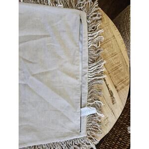 Pottery Barn Woven Plaid Fringe Pillow Cover 22"x22" Beige Linen Cotton Blend