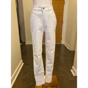 Keywords: mother denim, ankle crop, distressed denim, raw hem, black jeans, skinny jeans, stretch denim, high rise, designer jeans, modern, casual, streetwear