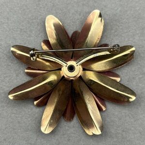 Vintage Y Back Metal Flower Power Brooch Deep Pink and Gold Tone