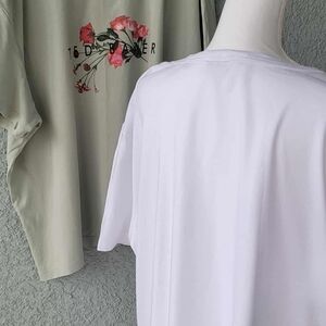 The white t-shirt has no flaws, the green one has a spot slightly discolored.