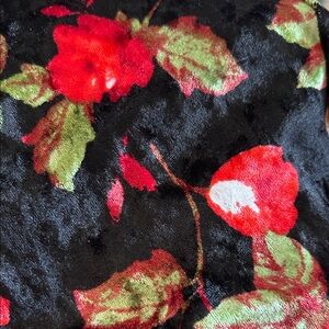 Elevate your style with this stunning floral velvet blazer. Featuring a vibrant red floral pattern on a classic black background, this blazer adds a touch of elegance to any outfit. Perfect for both casual and formal occasions.