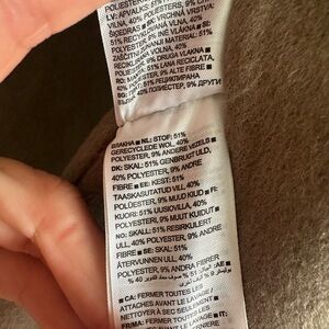 51% recycled wool, 40% polyester, 10% other.