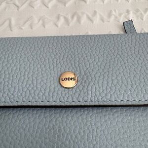 LODIS BLUE Kate Classic Pebbled Leather RFID Slim Large Flap Snap Wallet~UNIQUE