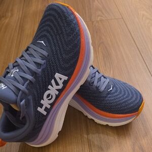 Women's Hoka Clifton 10 running walking shoes. White and Blue, size 8.5