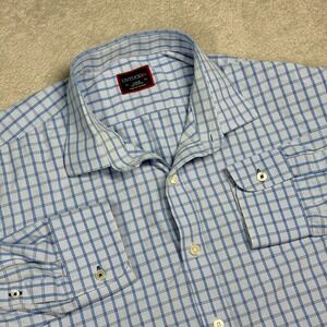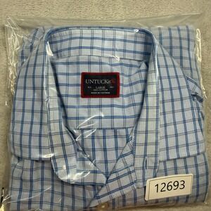 UNTUCKit Mens Large Blue White Plaid Long Sleeve Button Down Shirt 100 Cotton
