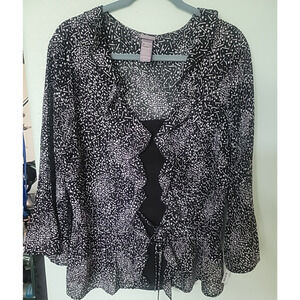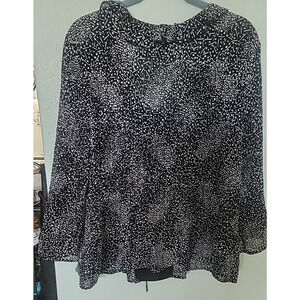 Laura Scott Woman's Size X Large Flared Sleeve Blouse Black White Flouncy