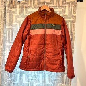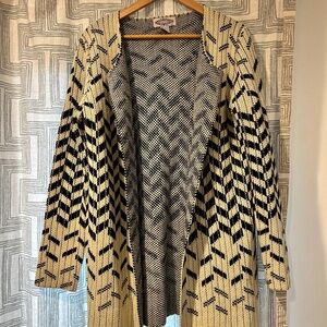 Faux suede and sherpa. Size large, oversized fit, could fit XL.