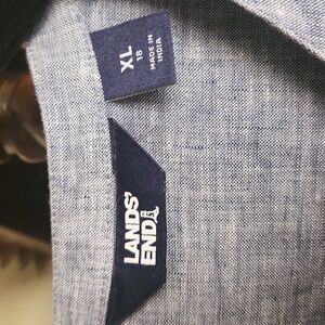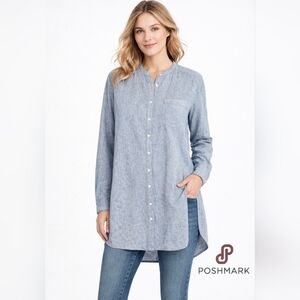 Lands' End, Women's Bluish Gray Linen Button Down Tunic Shirt Dress SZ XL