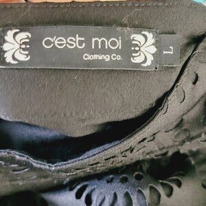 C'est Moi Black Cut Out Floral Lace Zipper Back Lined A-Line Mini Skirt Size Large