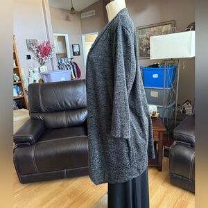 Elegant gray cardigan. Open front design. Soft and comfortable fabric.