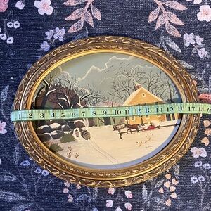Vintage Winter Scene Oval 18” x 14” Framed original Painting signed