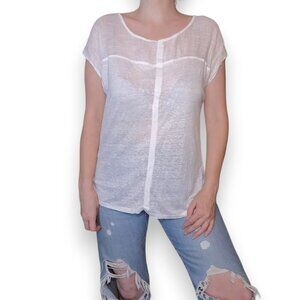 5/$100 SALE - MAJESTIC FILATURES Paris 100% Linen White Short Sleeve Top