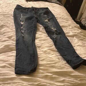 Women’s Classic straight fit. Dark blue denim. Subtle fading for style.