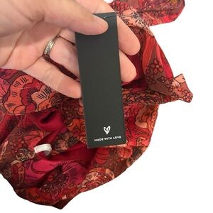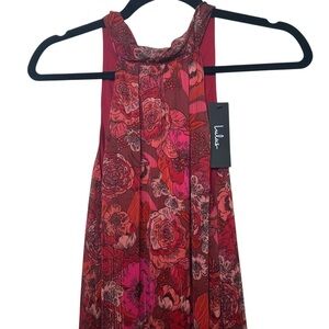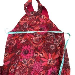 NWT Lulus Standout Aesthetic Red Floral Lurex Halter Tiered Midi Dress small