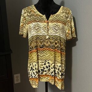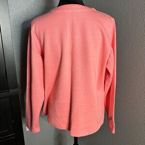 Quacker Factory Sweater Top Large Dragonfly Embellished Coral Pink 2-in-1
