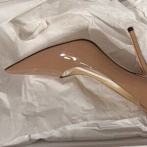 Jimmy Choo Love100 Ballet-Pink Patent-Leather Pointed Pumps with JC Emblem
