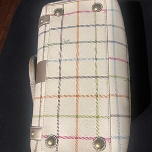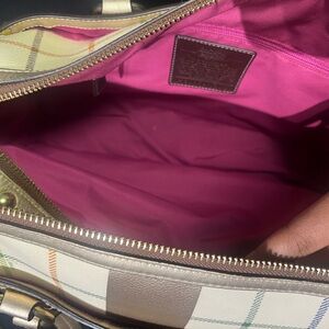 Coach XL Heritage Stripe Tattersal Double Zip Boston Satchel