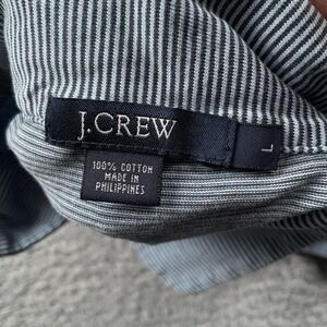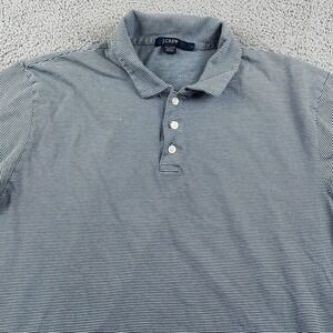 J Crew Polo Shirt Mens Large Blue White Micro Stripe 100% Cotton Casual Preppy