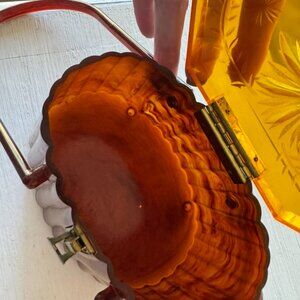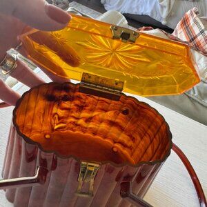 Vintage Lucite Amber Barrel Bag with Gold Clasp