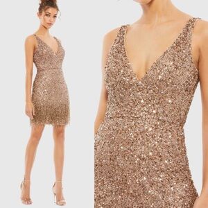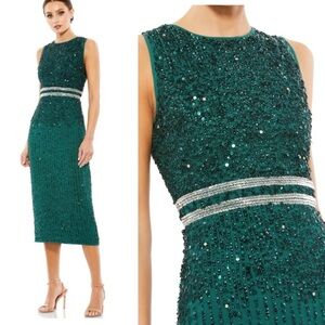 Mac Duggal EMBELLISHED BUTTERFLY SLEEVE VELVET HEM MIDI DRESS size 12 NWT