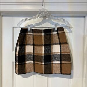 Elevate your wardrobe with this elegant plaid mini skirt. Featuring a classic tan and black pattern, it's perfect for versatile styling.