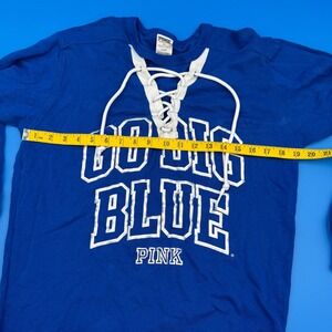 Keywords: PINK, Victoria's Secret, sweatshirt, lace up, graphic, college, apparel, pullover, casual, sporty, blue, athletic, school spirit