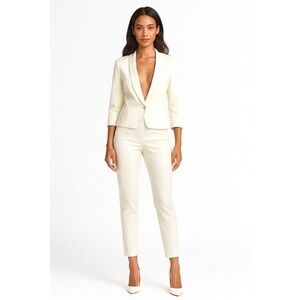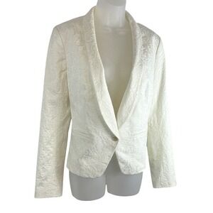 LOFT Ann Taylor White Jacquard Shawl Collar Blazer Jacket 8 Cocktail Party 65-36