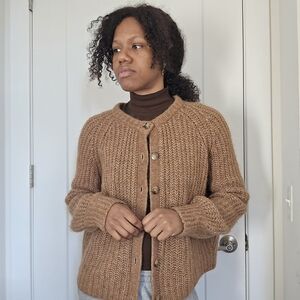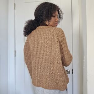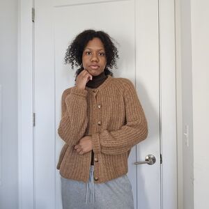 Stay warm and stylish with this cozy brown knit sweater. Perfect for any occasion.