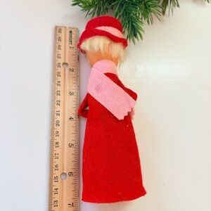 Vintage MCM Christmas Floral Arrangement Felt Doll Carolers Plastic Greenery