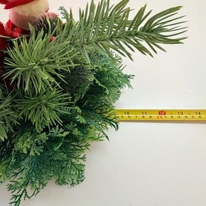 One of the carolers is loose and can be positioned where buyer wants it. Several greenery picks on a foam base.
