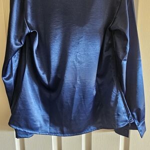Stylish satin long sleeve top with a draped neckline. Perfect for any occasion, elevate your sophisticated look, perfect for professional or evening wear.