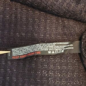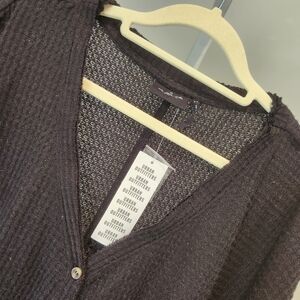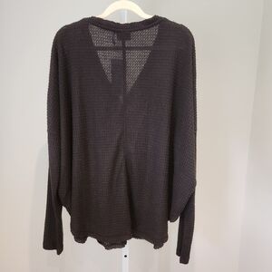 Brand new with tag, Out from Under/Urban Outiftters "Jojo" black waffle knit button-up shirt, size large. Oversized/boxy fit. Curved & raw edge hem. Drop shoulder seam. Comes with an extra/replacement button. 77%Polyester 18% Rayon 5% Spandex.