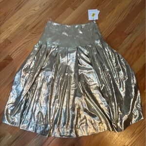 MESTIZA SEVILLE MIDI SKIRT - CHAMPAGNE PLEATED METALLIC Size 10 NWT