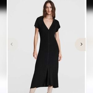 This elegant dress features a classic black top with a chic white and black striped skirt. Perfect for any occasion, it combines style and comfort effortlessly.