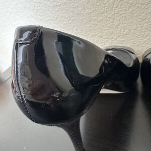 White House Black Market Women's 7.5 High Heels Black Peep Toe Patent Leather