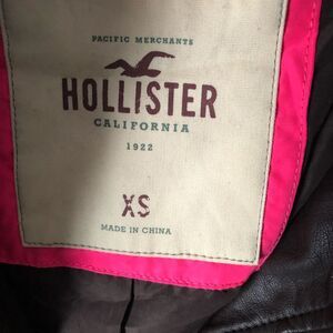 Hollister Women's Brown Faux Leather Moto motorcycle bike Jacket full zip up XS, some wrinkles from storage, otherwise pre-owned good condition
