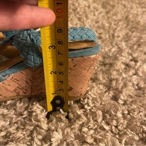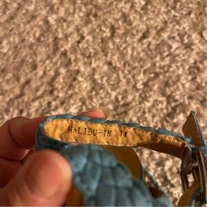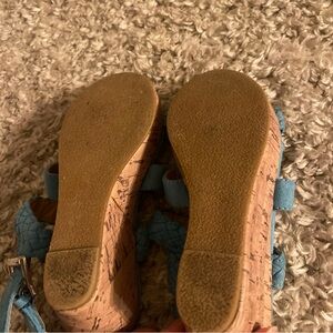 Teal braided straps. Cork wedge heel. Ideal for casual wear. Toddler size