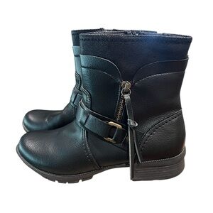 Clarks Riddle Avant Women’s Black Moto Boots Size 8.5 M 1” heel, Inside Zipper.