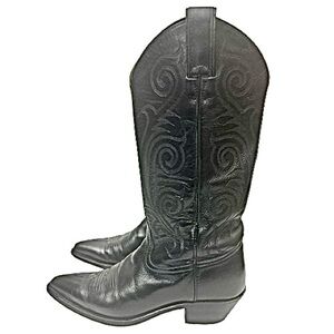Tony Lama 1974 Women's Size 7 B Shoes Black Leather Roper Western Cowboy Boots