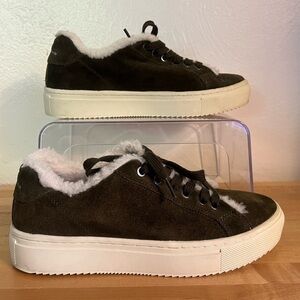 Marc Fisher Dakari Lace Up Sneakers Green Leather Suede Faux Fur Lined Size 6