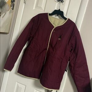 Nike hoodie with a sleek gray and black design. Features a front zipper and hood.