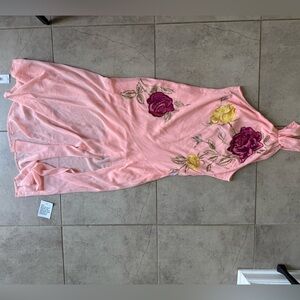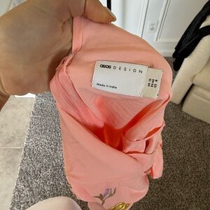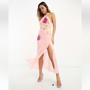 ASOS DESIGN embroidered split front halter midi dress in light coral size 8