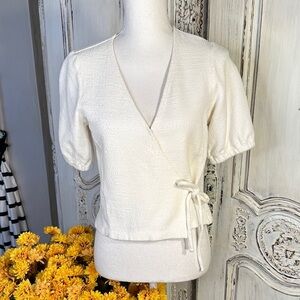 Japna Cotton Blend Heavy White Lace High Neck Short Sleeve Top Size Size Med
