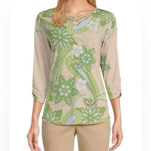Allison Daley Paisley Print 3/4 Ruched Sleeve